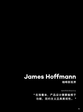C James Hoffmann 咖啡新视界 咖啡界的网红担当 " 在我看来,产品设计需要植根于 功能,简约主义且具美观性。 " 图 / Atomic Coffee Roaster 92 93