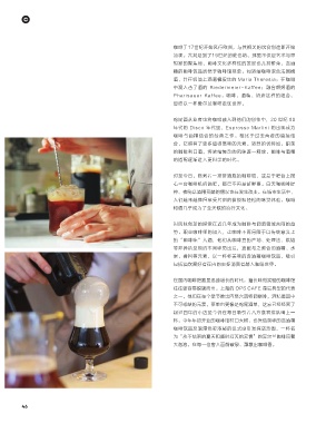 杯。今年年初开业的咖啡馆村口大树,也凭借美味的含酒精 的埃塞冷萃作基底,加入由100%葡萄汁酿造的 Pisco,搭 级的意大利美食会走到一起,也如咖啡牛奶的融合一样,