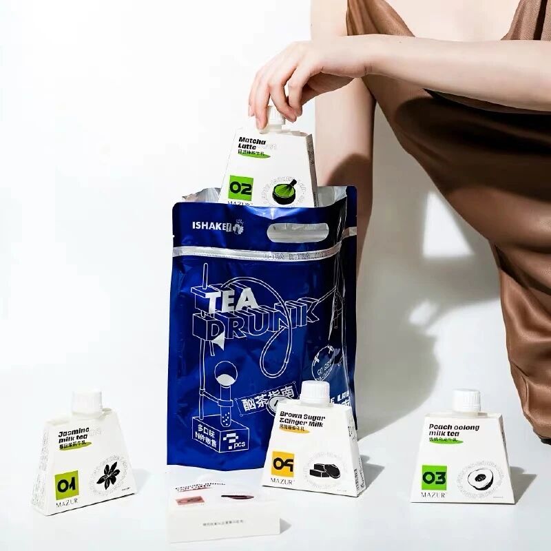 点评:喜欢把茶做成水的木马逐风,不光给产品命名成香槟、莫吉托,还强烈推荐使用气泡水冲泡,调味感较重;除此之外,还涉足奶茶类目,除了冲剂类奶茶,还有前段时间风很大的手摇饮款。
