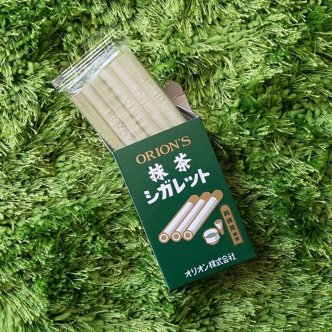 烟盒系列是ORION’S的经典热门款,从1951年销售至今,抹茶和可乐口味是同期上市的口味。抹茶烟仔糖由研磨抹茶粉制成,加入大量白砂糖,导致6支一盒就拥有1711KJ的高热量,从健康角度来看,这款“烟”也需要适量。