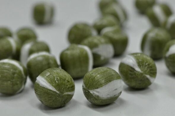 在这里,玄米茶、煎茶、抹茶都能被做成茶糖,样式摆脱了纯色调,以抹茶牛奶为例,白色挑染的外表让小巧的糖果越发活泼起来。