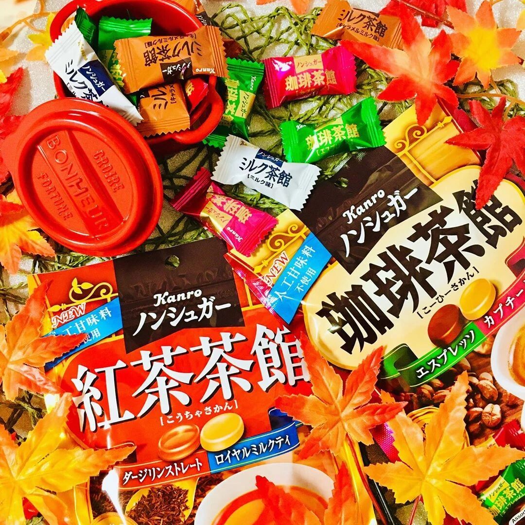 该系列的KANRO用“xx茶館”起名强调专一度,每包都是双味,共有两款含茶的糖果:紅茶茶館和抹茶茶館。前者选用印度大吉岭红茶,另一风味则是牛奶红茶味;后者为京都的温润宇治抹茶和抹茶牛奶味的组合。