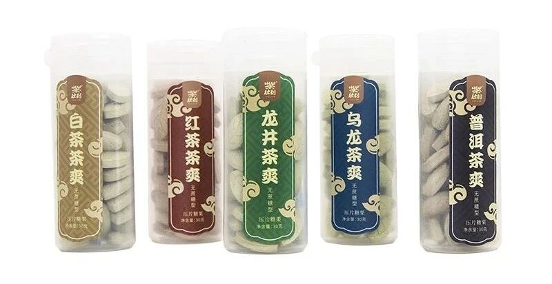 这一系列共有五种口味:福建福鼎白茶、中国台湾乌龙、浙江杭州龙井、云南西双版纳普洱和云南西双版纳红茶,清凉且友好的茶感处在目前市面上茶糖产品中的前列位置。
