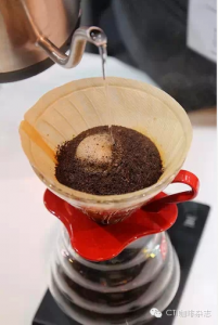 - 这个没有练过一段时间,绝对是最难的一个过程。当水把咖啡粉基本都浸透,开始有滴下时,停止注水,让咖啡粉充分苏醒,焖蒸60秒