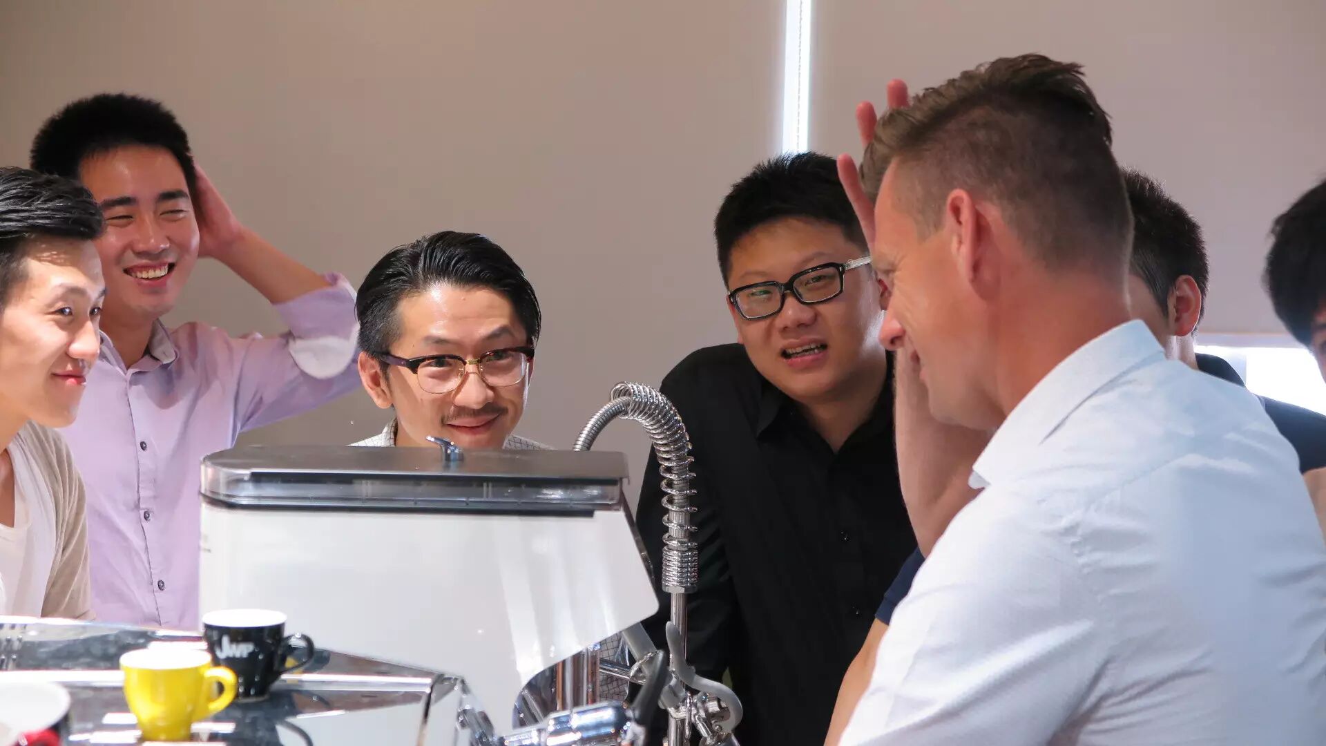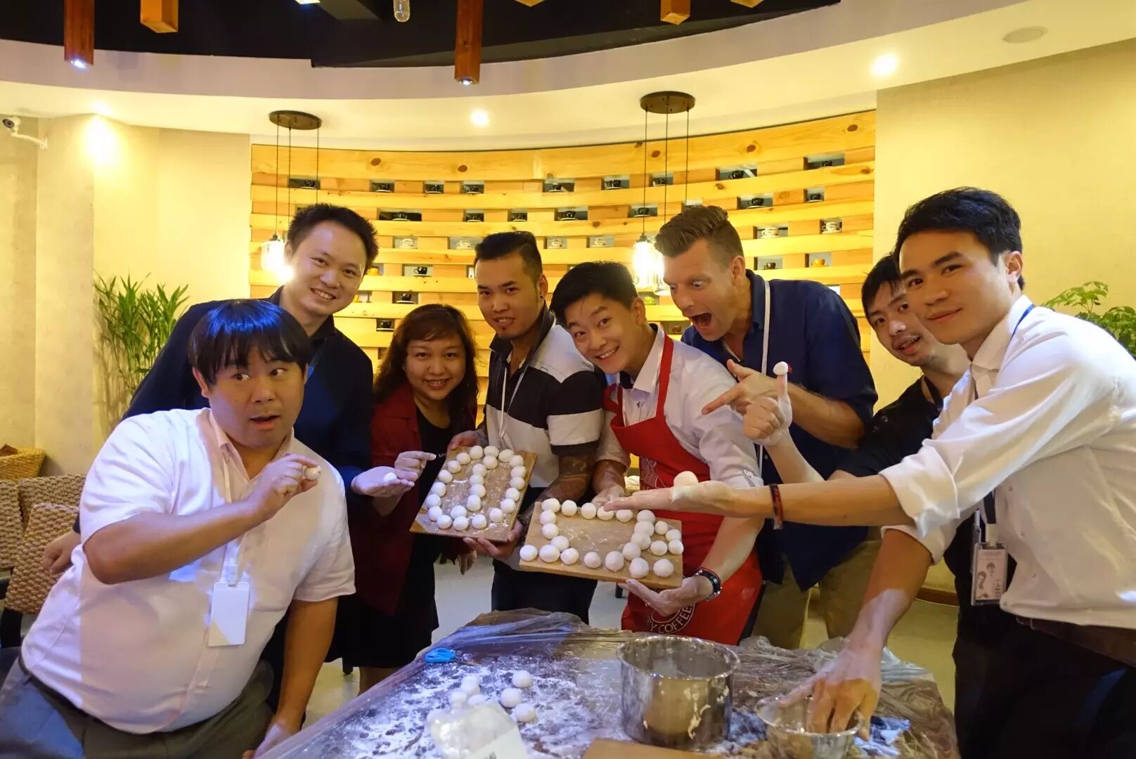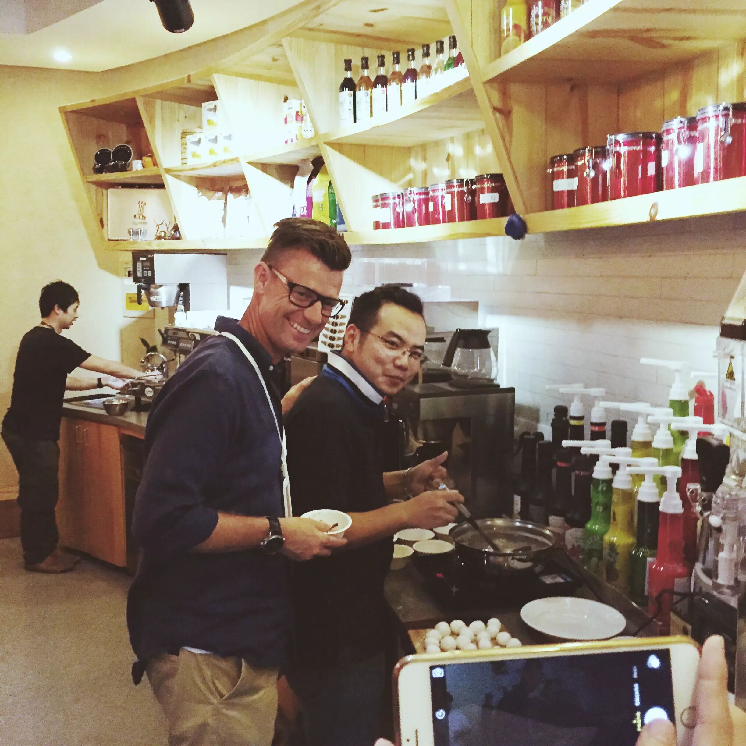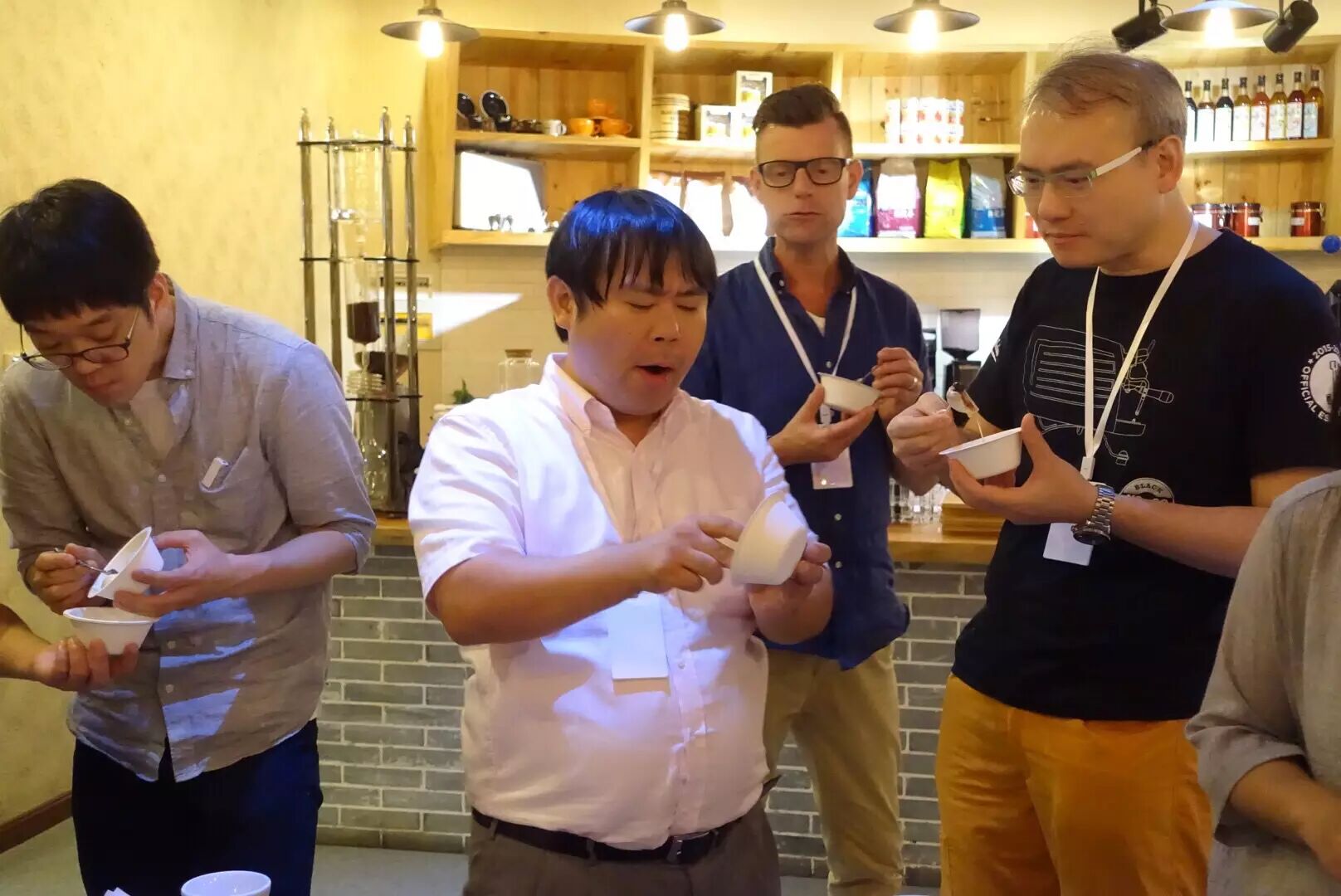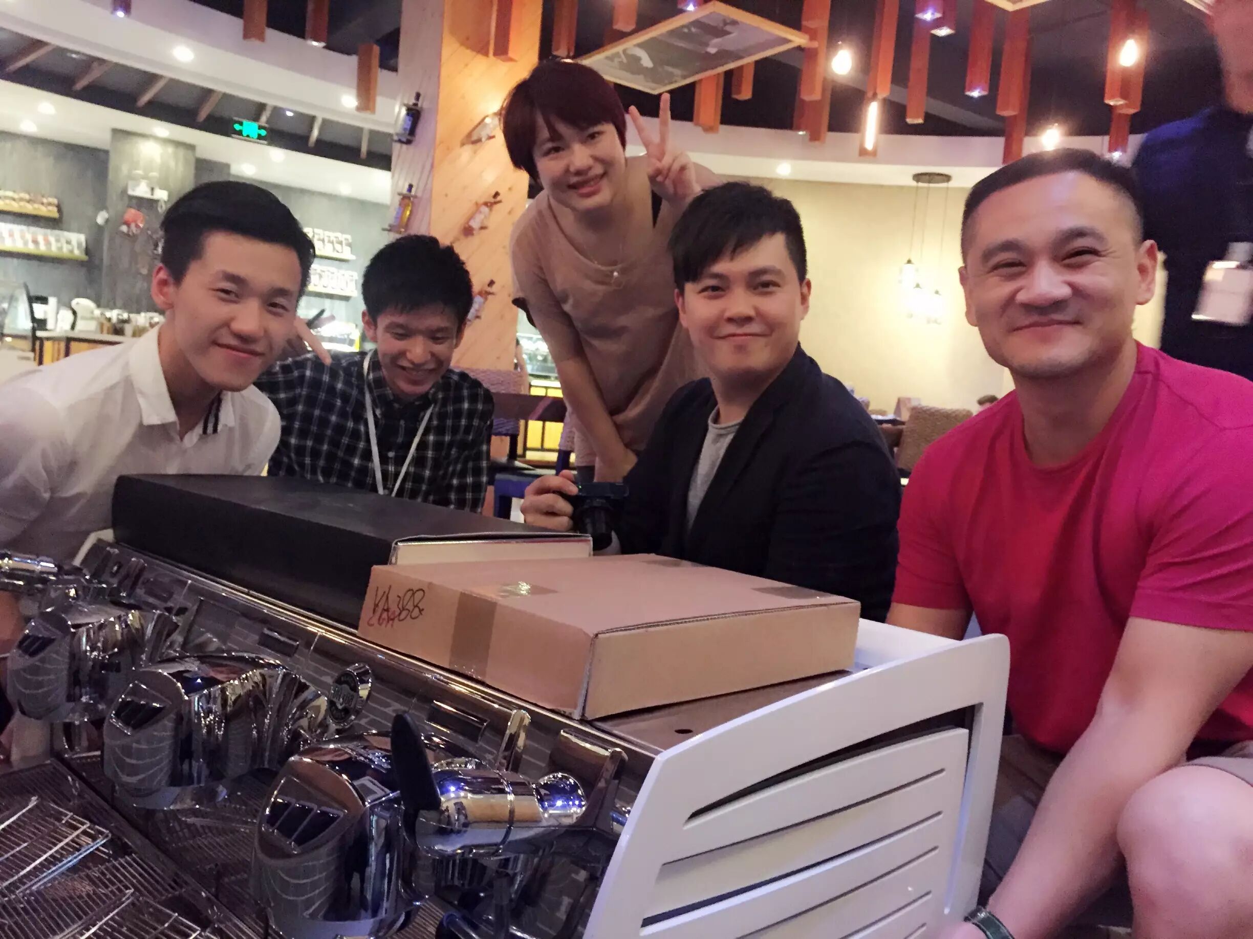 晚餐时光是和老同学相聚的最佳时机,6位上两届参与训练营的同学也千里迢迢赶来!组长张寅喆、林东源老师、还有韩国两位同学赶了6小时来上海聚会,很高兴再次见到大家!照片深深告诉我们,一名好的咖啡师也是必须要狠狠地Funny Face!