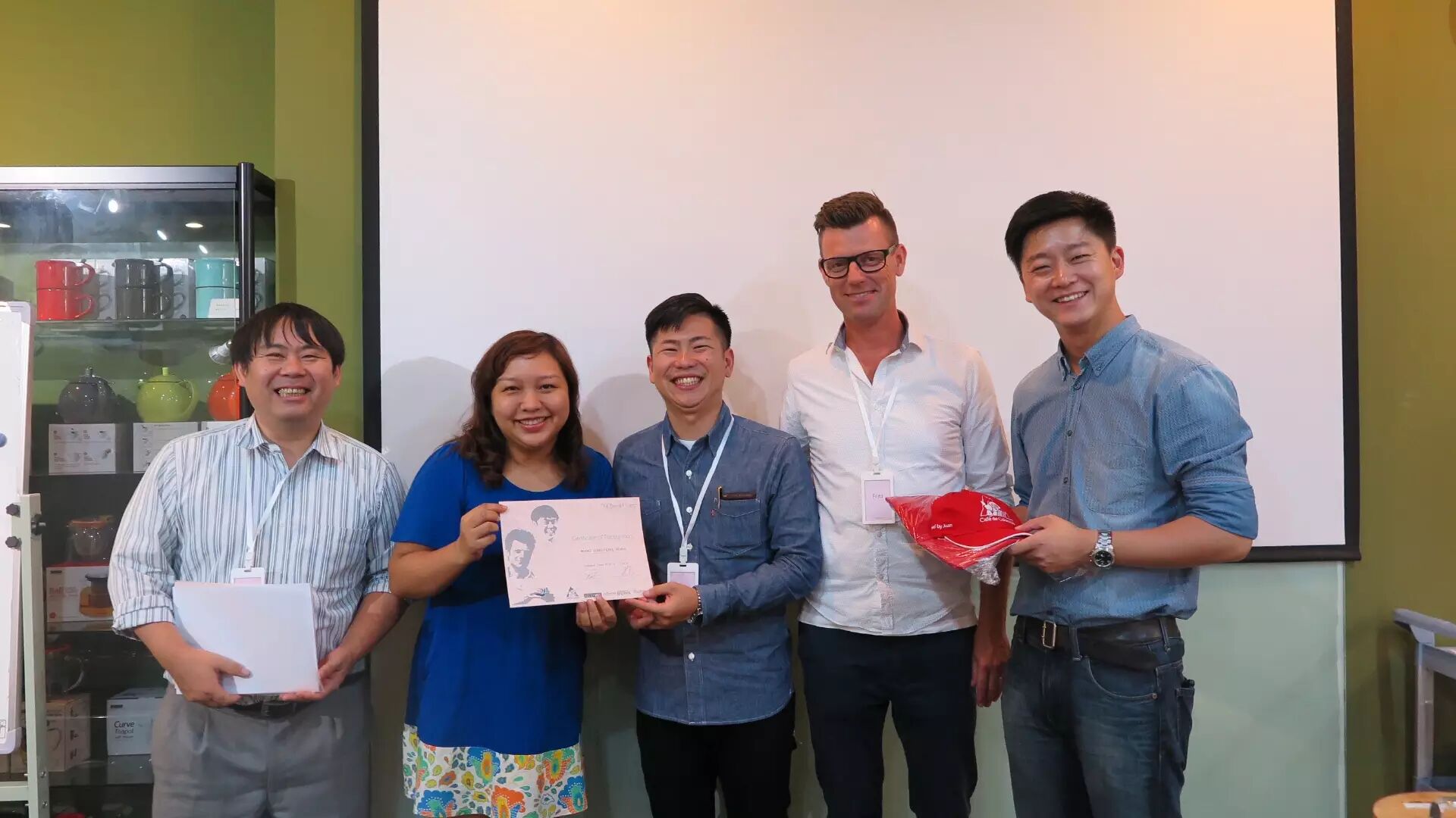 而第三组则汇聚了两位即将在下个月参加咖啡师大赛的选手——来自日本的Kai桑和来自武汉的犀牛哥,因此,他们用强大的理论知识,搭配流利的英语解说,调配了混合单一产区的咖啡,酸甜感十足。获得了“最知识渊博小组”奖!
