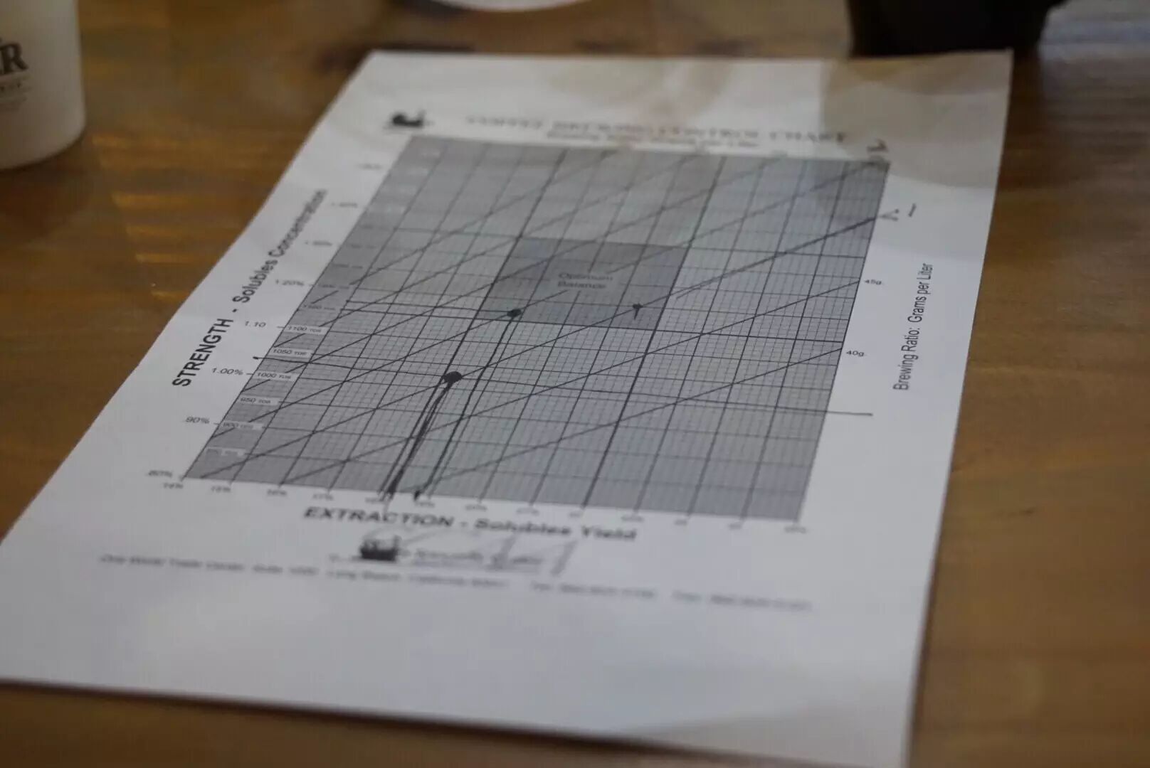 说起过滤式咖啡,他分享了五大关键要素:水、温度、时间、乱流、滤纸。而这五大要素所产生的萃取率、TDS(咖啡浓度)则可以通过上图这张小小的表格得以体现。这证明咖啡的味道与这些数值是有着科学的联系,很是神奇。