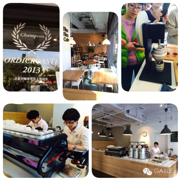 店主在2013年参加北欧烘焙大赛,几经波折后,第一次拿下这个从来没有被欧洲以外国家选手拿过的奖杯,成为第一位亚洲人拿下这个冠军(上图银盘就是奖杯喇)。这个奖杯可是第一次离开北欧哦!!!而且历经一段可歌可泣的艰辛过程才把奖牌光明正大“领”回来的!!店里咖啡师为大家介绍北欧咖啡的特色,烘焙度为极浅,酸度明亮。卡布奇诺,espresso甜感很强。