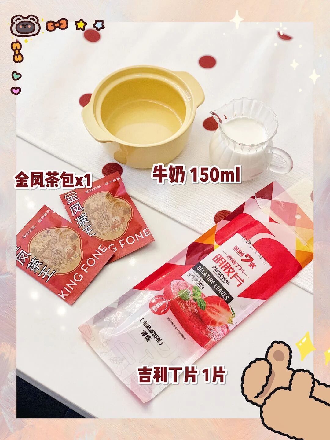 喜茶的“在家做奶茶”中让大家用他家茶包与吉利丁片自制茶冻