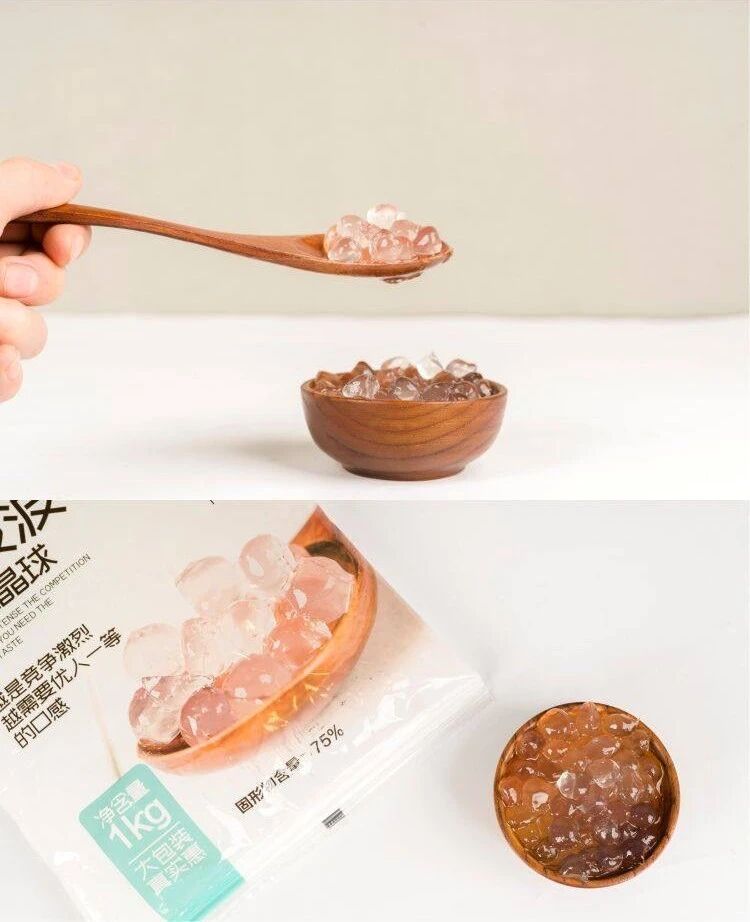 与珍珠不同的是,寒天和脆啵啵大多都是开袋即食,是真正意义上的免煮~倒入茶汤即可食用。
