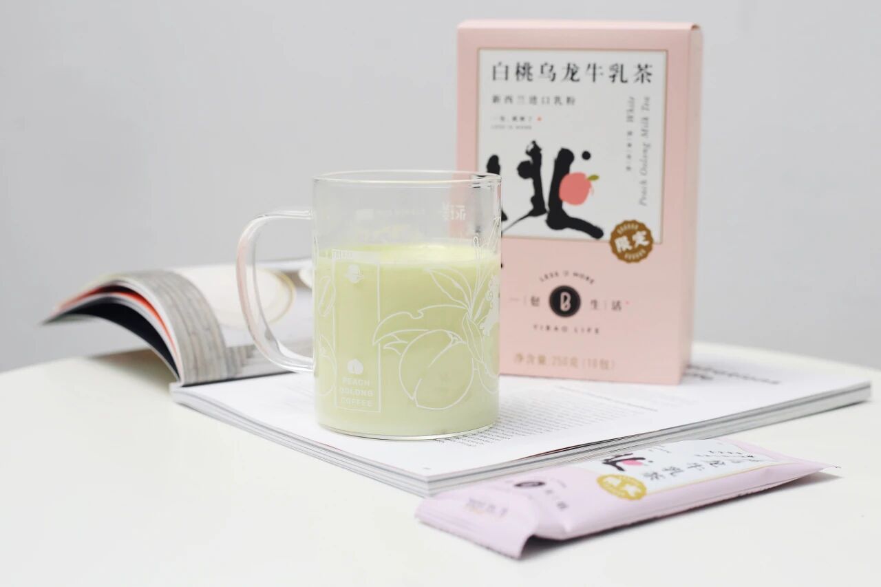 无论水温多少,你都能用一支牛乳茶粉冲出浓浓白桃香气的奶茶,闻着清新、喝着甜美。
