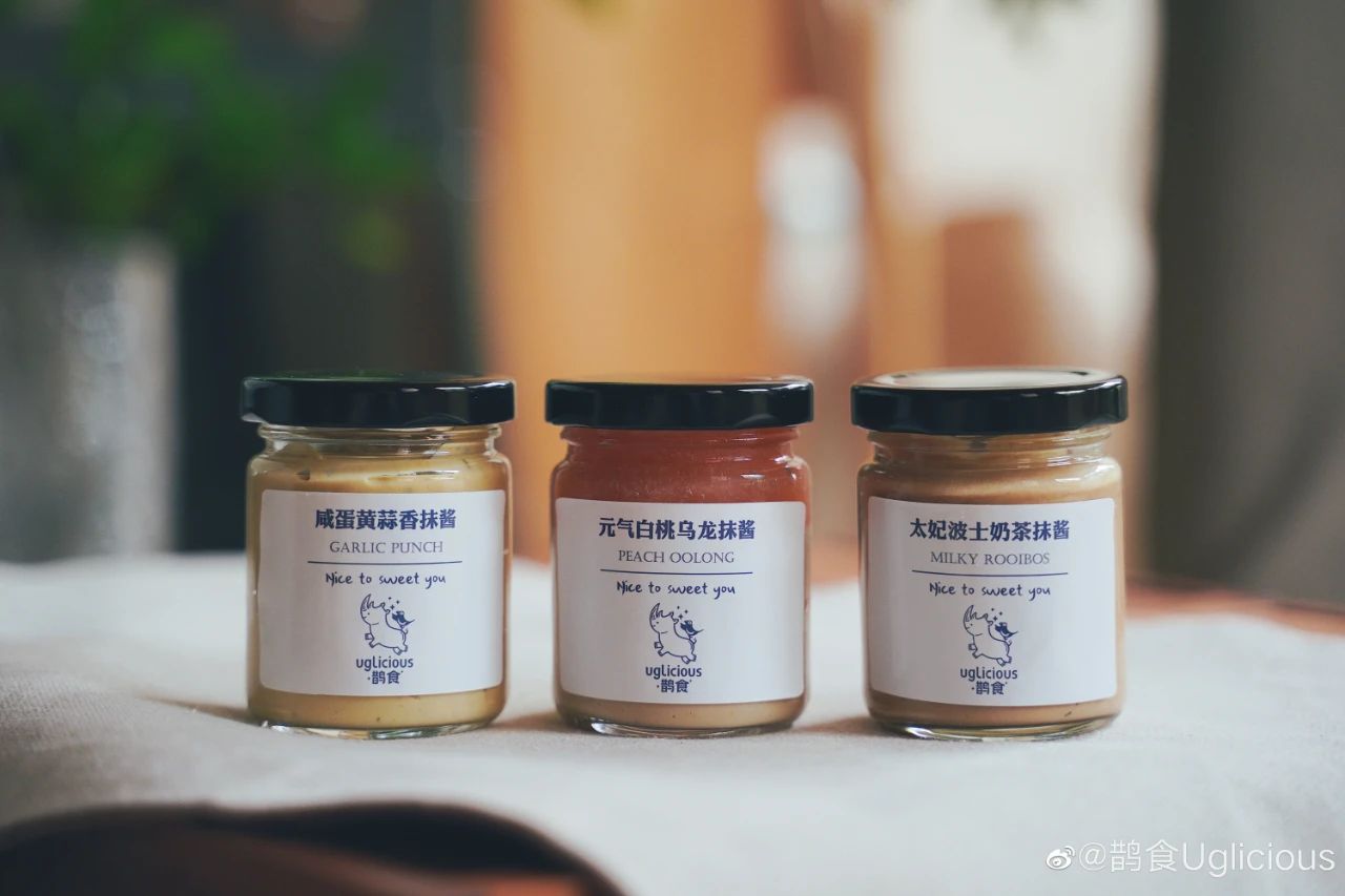 我们最近发现了一个名叫「鹊食™ Uglicious」的国内品牌,在烘焙品之外,他们还上线了抹酱系列。