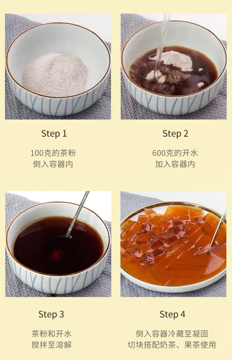 但其实这两款果冻状也非常适合懒人制茶。准备一碟茶粉,加水搅拌至溶解,冷藏至凝固就可切割出各种形状大小的茶冻,随汁倒入冰牛奶就能收获一杯冰爽奶茶~