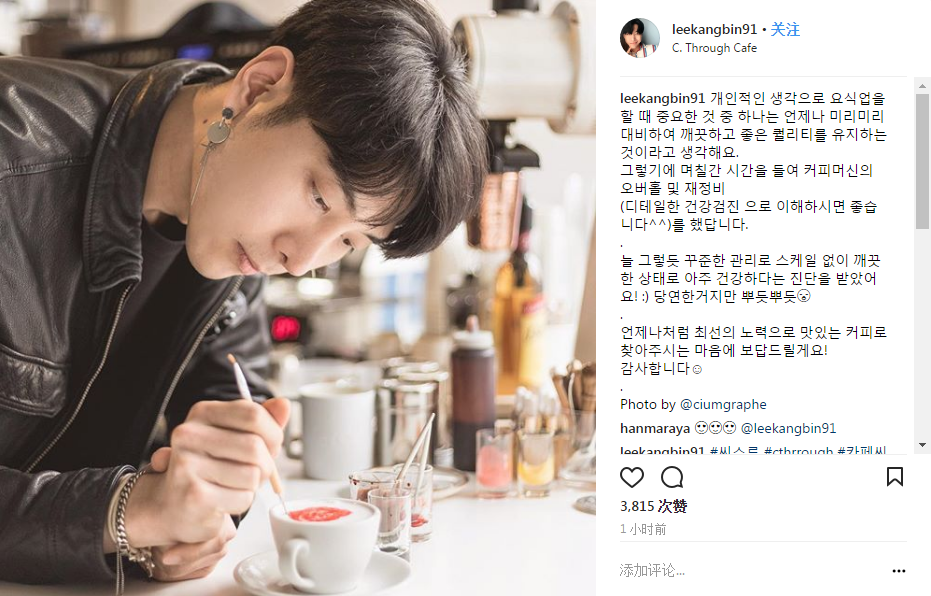 Both of Kangbin’s cream art and his appearance are visual, which means that they can spread as their original form. The human nature of appreciating beauty makes it almost boundary free for the mass audience to accept thus follow him as an idol, as a barista.