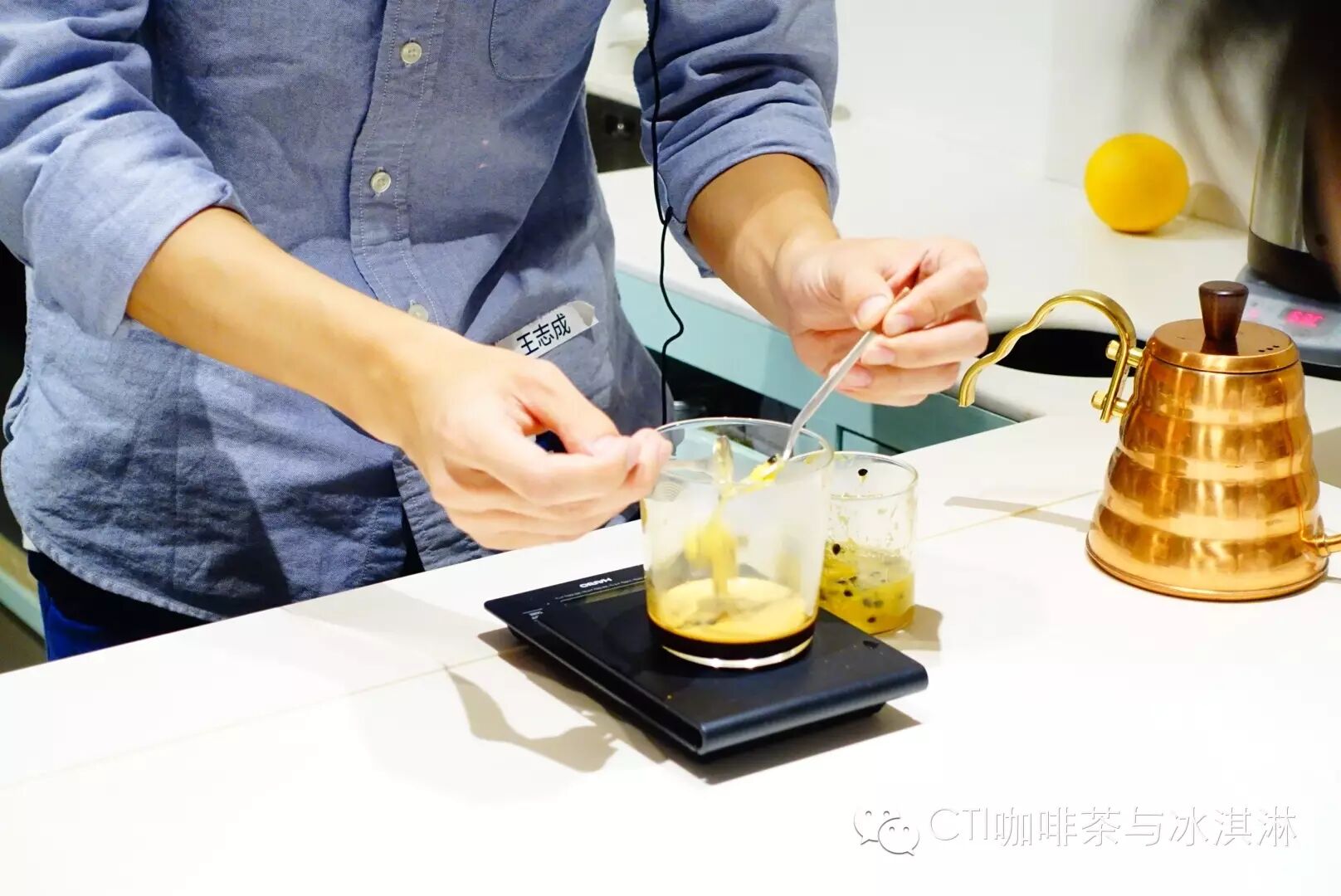 来自月球咖啡的压轴选手王志成用了用12小时制作的百香果糖浆加进了咖啡中。