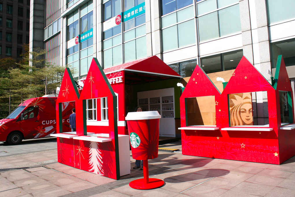 During Christmas in 2014, Starbucks Taiwan launched a Christmas Pop-up Store in Taipei from 6 December to 25 December. With “red” as a keyword, the store consisted of one coffee shuttle, one Christmas cottage, two coffee-brew kiosks and one pillar box with a Starbucks logo, all of which were red visual elements. Customers were encouraged to take part in its four-step activity: make your own drip bag coffee, experience hand-drip or French press coffee, learn its online shop, and finally take a photo, in return for a souvenir postcard which you can put directly into that Starbucks box and mail to your friend.