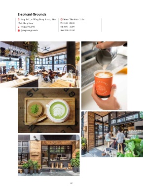 Elephant Grounds Shop D-L, 8 Wing Fung Street, Wan Mon - Thu 8:00 - 21:00 Chai, Hong Kong Fri 8:00 - 22:00 +852 2778 2700 Sat 9:00 - 22:00 @elephantgrounds Sun 9:00 -21:00 27