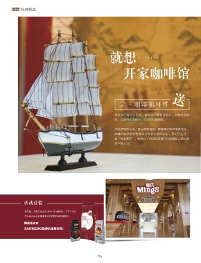 特别报道 就想 开家咖啡馆 送 之 咖啡机任性 或许对于每个人来说,或多或少都有过想开一间咖啡馆的 梦,在咖啡的浓香中,结交知心的朋友。 然而梦想很丰满,现实却很骨感,即使理论知识准备充分, 咖啡机高昂的价格依旧让许多人望而却步。而对于这样一 群“有志青年”,相信以下的活动能够在你的圆梦之路上助 你一臂之力! 活动详情 即日起,凡购买任意SANREMO咖啡机,并在三年内 累计购买使用此咖啡机双倍价格的铭氏咖啡豆, 则返还此台 SANREMO咖啡机金额全款。 110